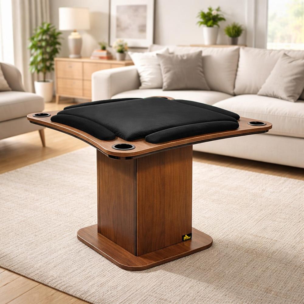 جلسة بلوت غير مع طاولة صكه فاخرة! بتصميم أسود أنيق تتحول بسهولة من أرضية لطاولة مرتفعة قماش مخمل يسهّل اللعب وحامل أكواب ستيل يكمّل الجلسة.. استمتع بجلسة ملكية مع الربع ولا تفوّت هالطاولة المميزة.